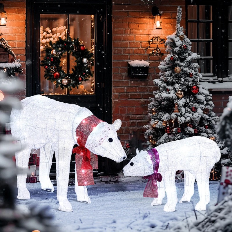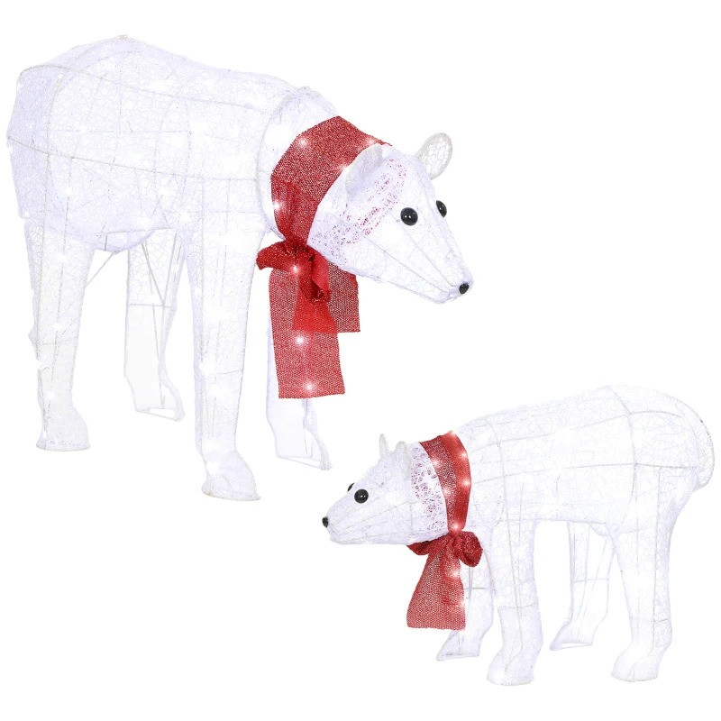 Tato vánoční dekorace s matkou a dítětem ledního medvěda vytvoří během svátků roztomilou a útulnou atmosféru. Svítící vánoční osvětlení ledního medvěda se 140 LED diodami vytvoří okouzlující zimní atmosféru. Tento okouzlující medvědí pár s voděodolností IP44 se skvěle hodí na zahradu nebo do obývacího pokoje, aby kdekoli šířil sváteční kouzlo.