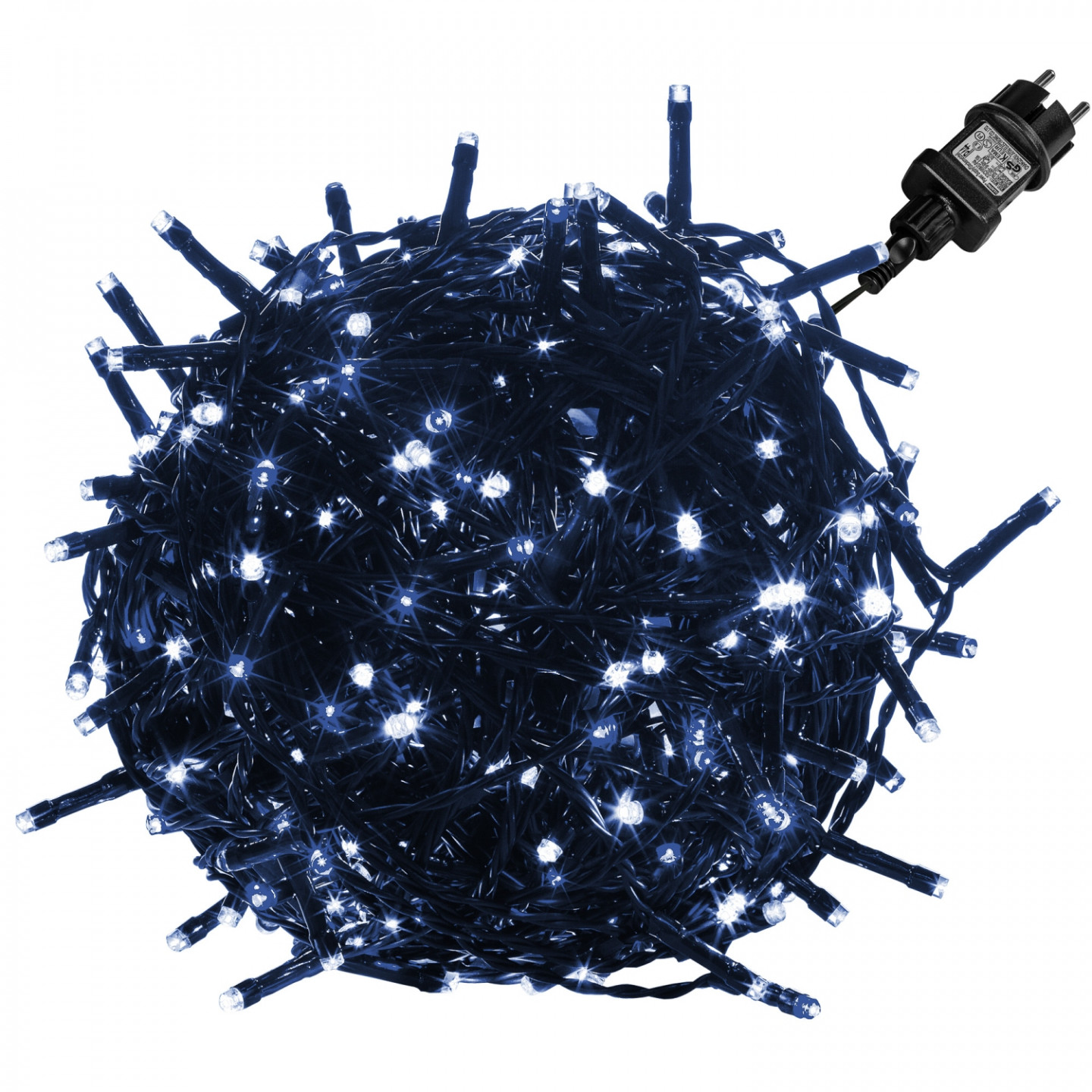 Vianočné LED osvetlenie 20 m | studená biela 200 LED | zelený kábel