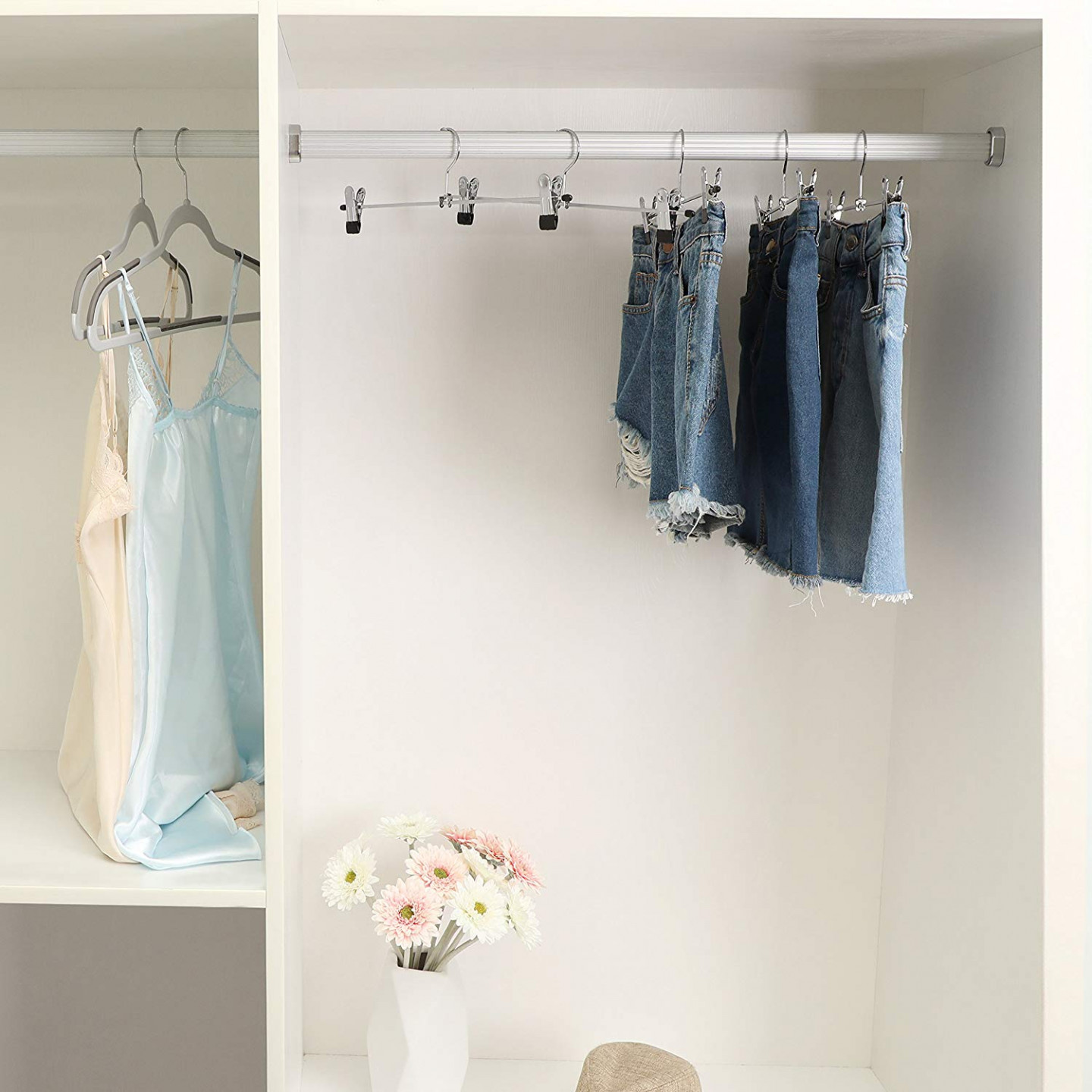 Balení 20 pevných kovových ramínek s prostorově úspornou konstrukcí a nastavitelnými protiskluzovými klipy. Udržujte si pořádek ve svém šatníku s těmito praktickými ramínky na kalhoty!