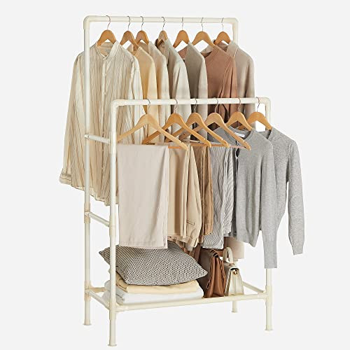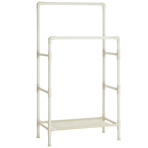 Kovový vešiak s 2 tyčami na oblečenie a 1 policou | biela