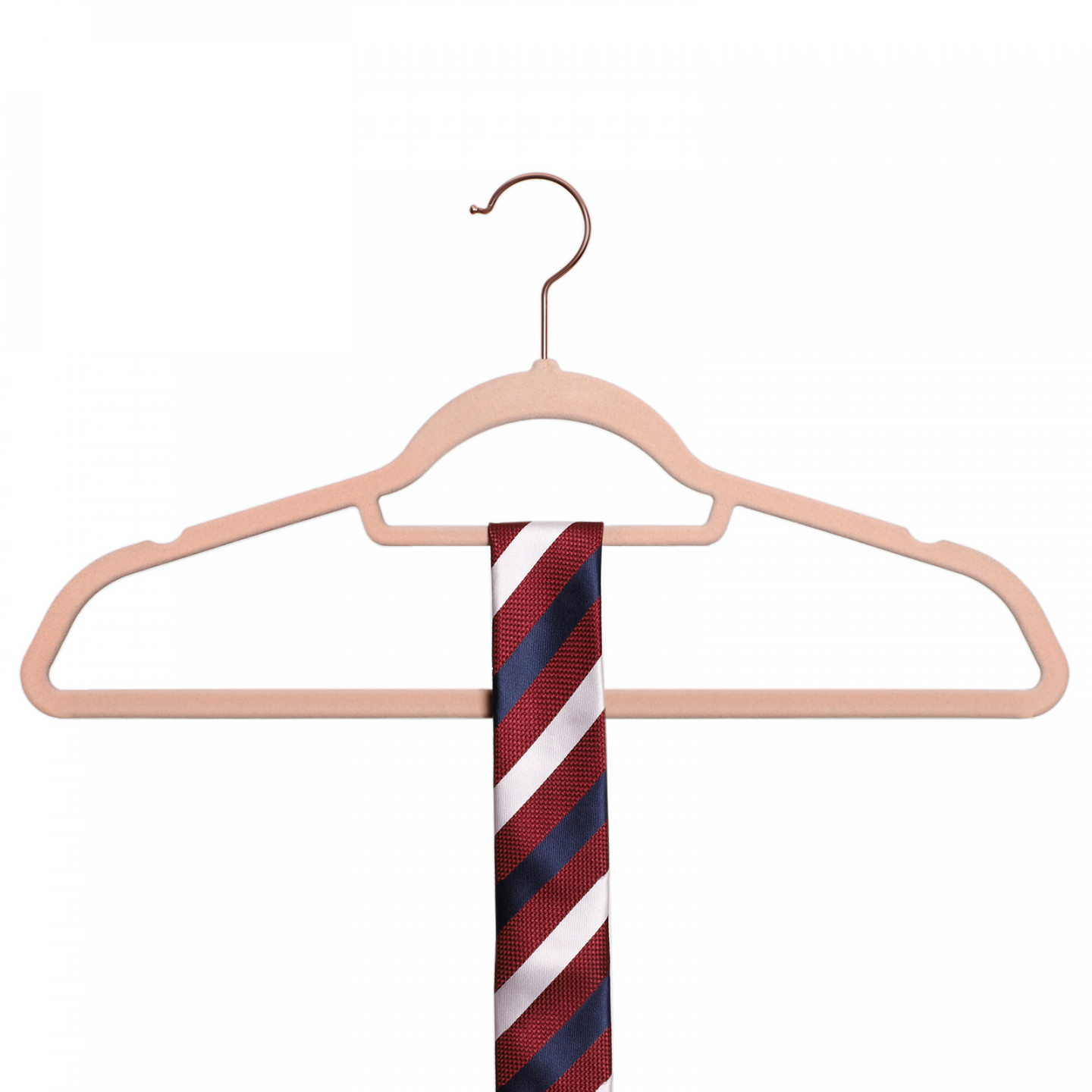 Tato elegantní ramínka z plastu mají sametově hladký a velice tenký povrch, který nepoškodí vaše oblečení a udrží je ve špičkovém tvaru. Protiskluzové štěrbiny ve tvaru U a protiskluzová lišta na kalhoty zabraňují klouzání oblečení a kalhot.