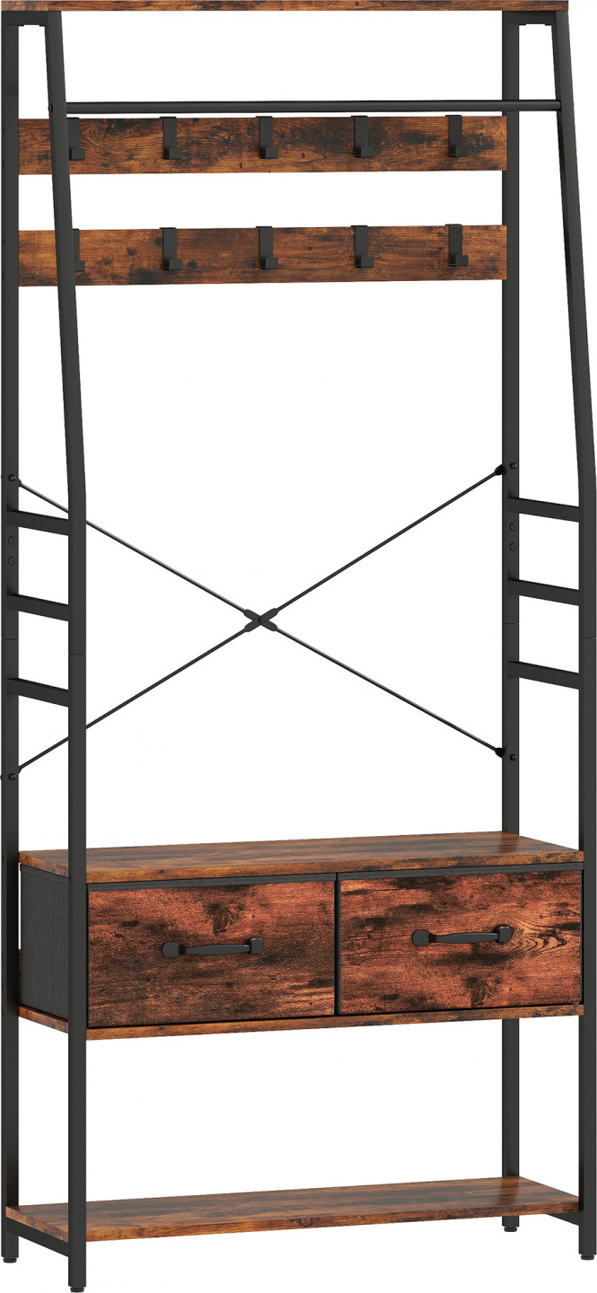 - Industriální styl věšáku s povrchem s efektem dřeva a kovovým rámem umocňuje atmosféru obývacího pokoje.