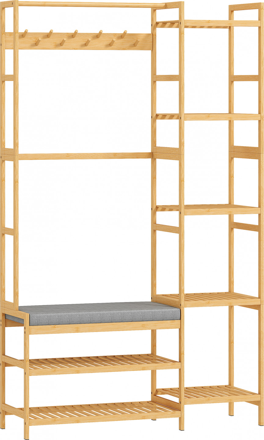 Trápí vás nepřehledný vstupní prostor plný kabátů, bot a tašek? Pomůže vám věšák s konstrukcí 5 v 1. Je vybaven elegantním bambusovým věšákem, deseti háčky a spoustou úložného prostoru, díky čemuž udrží pořádek. Zažijte uklizený a příjemný vchod, který usnadní každodenní život vaší rodiny a přinese do vašeho domova klid a pohodu.