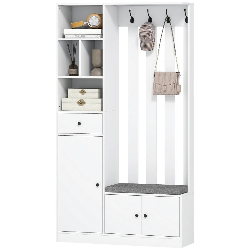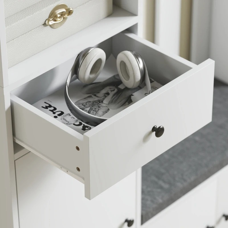 Trápí vás chaotická rána a nepřehledný vchod? Zběsilé hledání klíčů a bot může být velmi nepříjemné a stresující. Sada věšáku optimalizuje vaši ranní rutinu díky polstrované lavici pro pohodlné nazouvání bot a skryté skříňce a zásuvce pro uložení každodenních věcí mimo dohled. Zažijte klidnou a jednoduchou organizaci ve vaší domácnosti s tímto řešením 4 v 1.