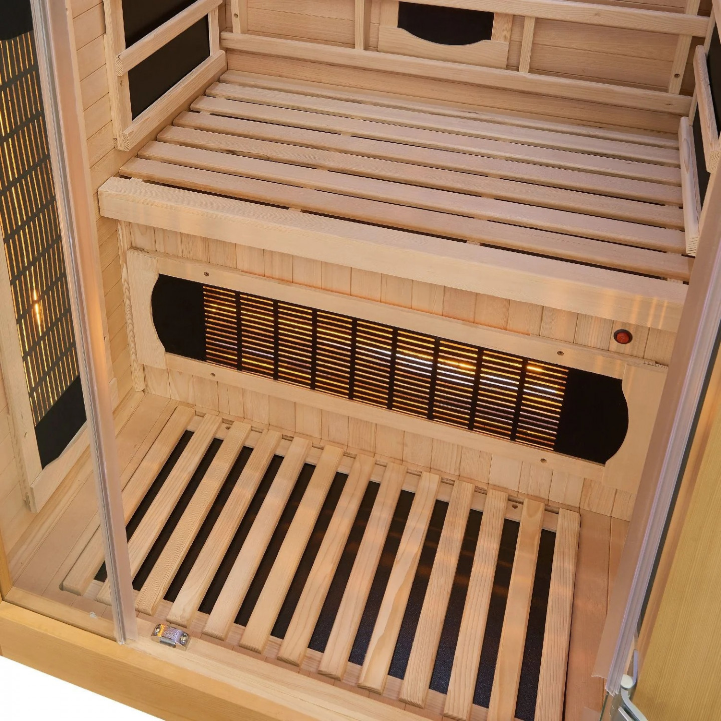 Dopřejte si dokonalou relaxaci a péči o zdraví v pohodlí domova s infračervenou saunou Kiruna 90. Tato kompaktní, ale prostorná sauna je ideální pro 1–2 osoby a díky moderní technologii infračerveného ohřevu zajišťuje rychlé, rovnoměrné a šetrné prohřátí celého těla.