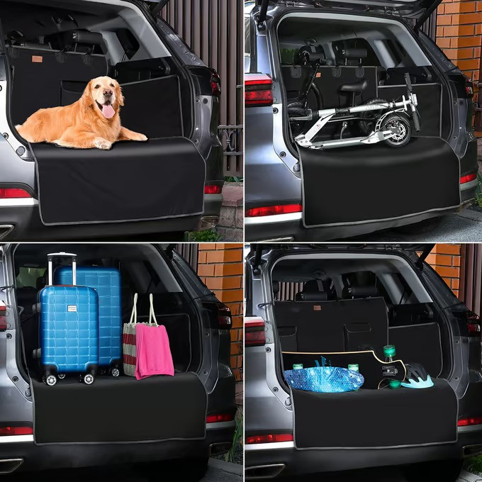 Vysoce kvalitní chránič zavazadlového prostoru udrží váš zavazadlový prostor čistý a nepoškozený. Nabízí dodatečnou ochranu bočních stran a nakládací hrany, která zabraňuje poškrábání, a to i při přepravě objemného a většího nákladu. Vložka do zavazadlového prostoru je vyrobena z odolného polyesteru 600D Oxford .Díky univerzálním rozměrům 180 x 170 cm se černý kryt auta ideálně vejde do kufru jakéhokoli auta, od malých aut až po SUV.12 suchých zipů a dva rychloupínací úchyty umožňují snadné a bezpečné připevnění deky k zadním opěrkám hlavy, zatímco čtyři popruhy s přísavkami poskytují dodatečnou fixaci. Odpovídající suchý zip s lepicími proužky jsou součástí dodávky . Deku lze alternativně použít i v kufrech s látkovou podšívkou bez dalších suchých zipů.