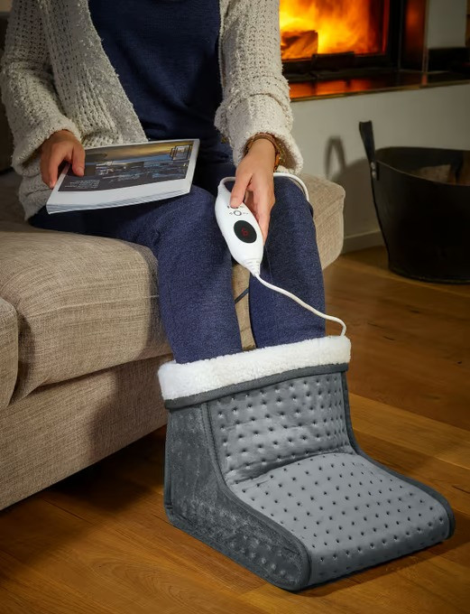Nadýchaný ohřívač nohou s 90minutovým časovačem má digitální displej a lze jej nastavit na 6 různých úrovní teploty pomocí regulátoru teploty. Vysoce kvalitní zpracování s příjemným, měkkým materiálem zajišťuje pohodlí vašich nohou. Ohřívač nohou má velmi efektivní vývoj tepla; bleskově se zahřeje a rovnoměrně rozloží teplo po celé vyhřáté botě. Funkce automatického vypnutí a ochrana proti přehřátí poskytují potřebnou bezpečnost. Vnitřní výstelku lze snadno vyjmout a prát při 30 °C .