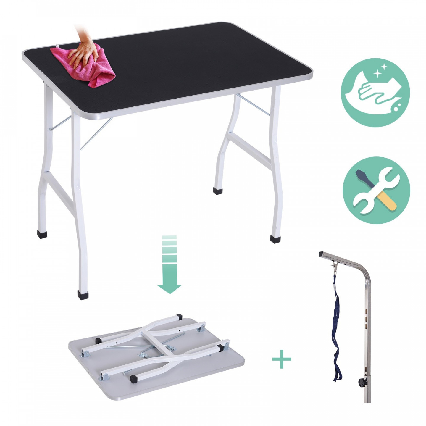 Náš strihací stôl je ideálny ako pre domácnosti, tak aj pre profesionálov v strihaní psov. Stôl je skladací, takže ho môžete použiť na výstavách a pod. Stôl má protišmykovú povrchovú úpravu a oceľový rám s práškovým nástrekom. Konzola pre pripnutie obojku je nastaviteľná. Stôl má široké využitie a prinesie pohodlie ako Vašim miláčikom, tak i Vám. Doska stola s protišmykovým gumovým povrchom zaistí pohodlný povrch pre Vaších miláčikov a ľahko sa dezinfikuje. Robustná konzola najvyššej kvality pre pripnutie obojku je výškovo nastaviteľná a ergonomická. Slučka konzoly udrží miláčikov v pokoji na mieste a má vylepšený spôsob zapínania.