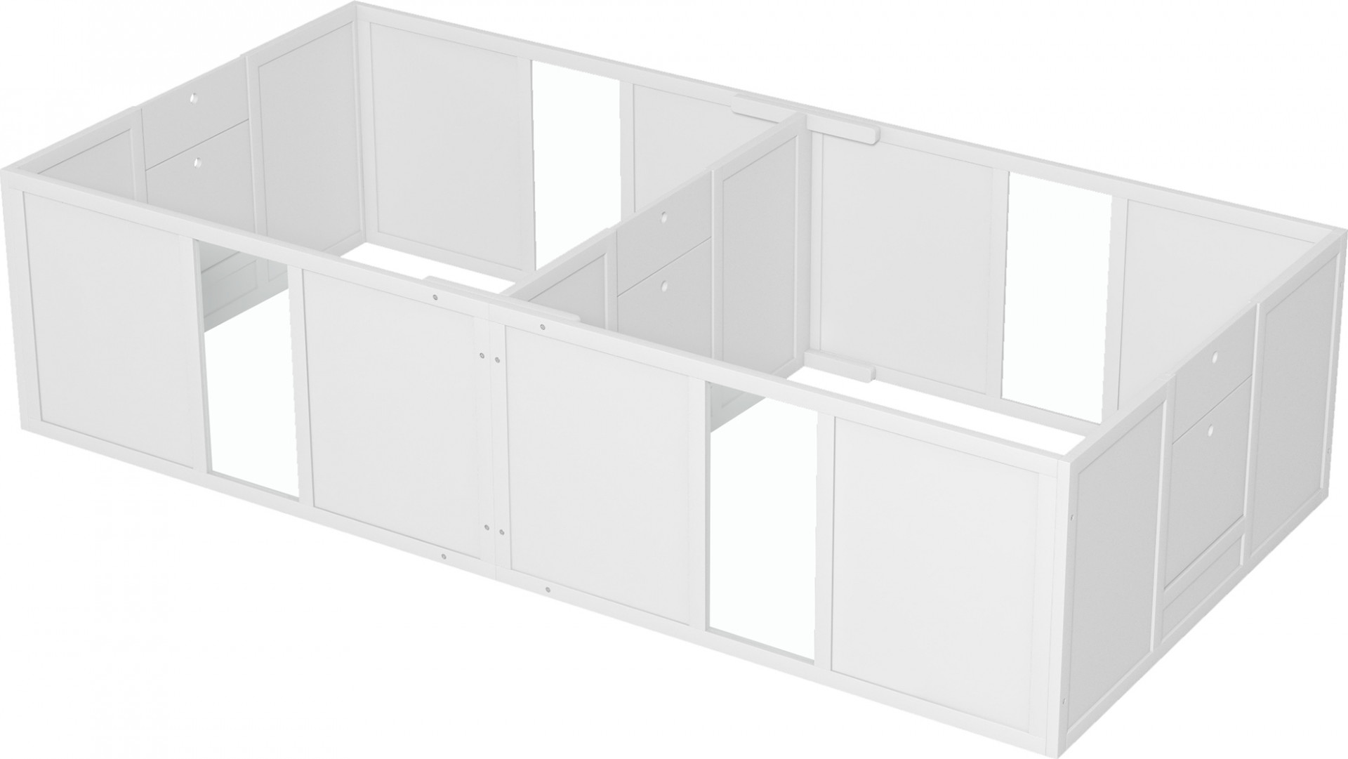 - Robustní konstrukce porodního boxu z borovicového dřeva a MDF desek