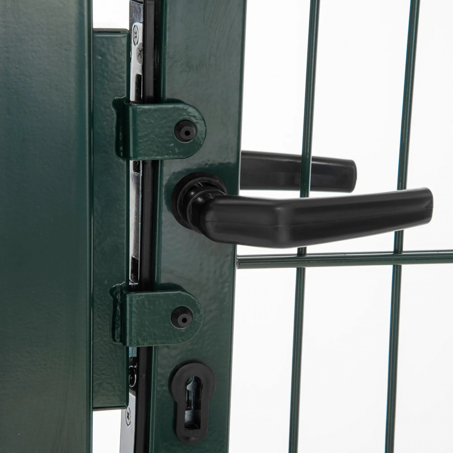 Tato zahradní branka s jednoduchým a stylovým mřížovým designem vytváří moderní a praktický vchod, který chrání vaši zahradu před okolním světem. Robustní ocelový rám s kováním z nerezové oceli zajišťuje pevnou a odolnou konstrukci. Zámek se třemi odpovídajícími klíči pro zajištění bezpečnosti. Prohlédněte si tuto zahradní branku a doplňte si zahradu nebo dvorek o skvělý doplněk.
