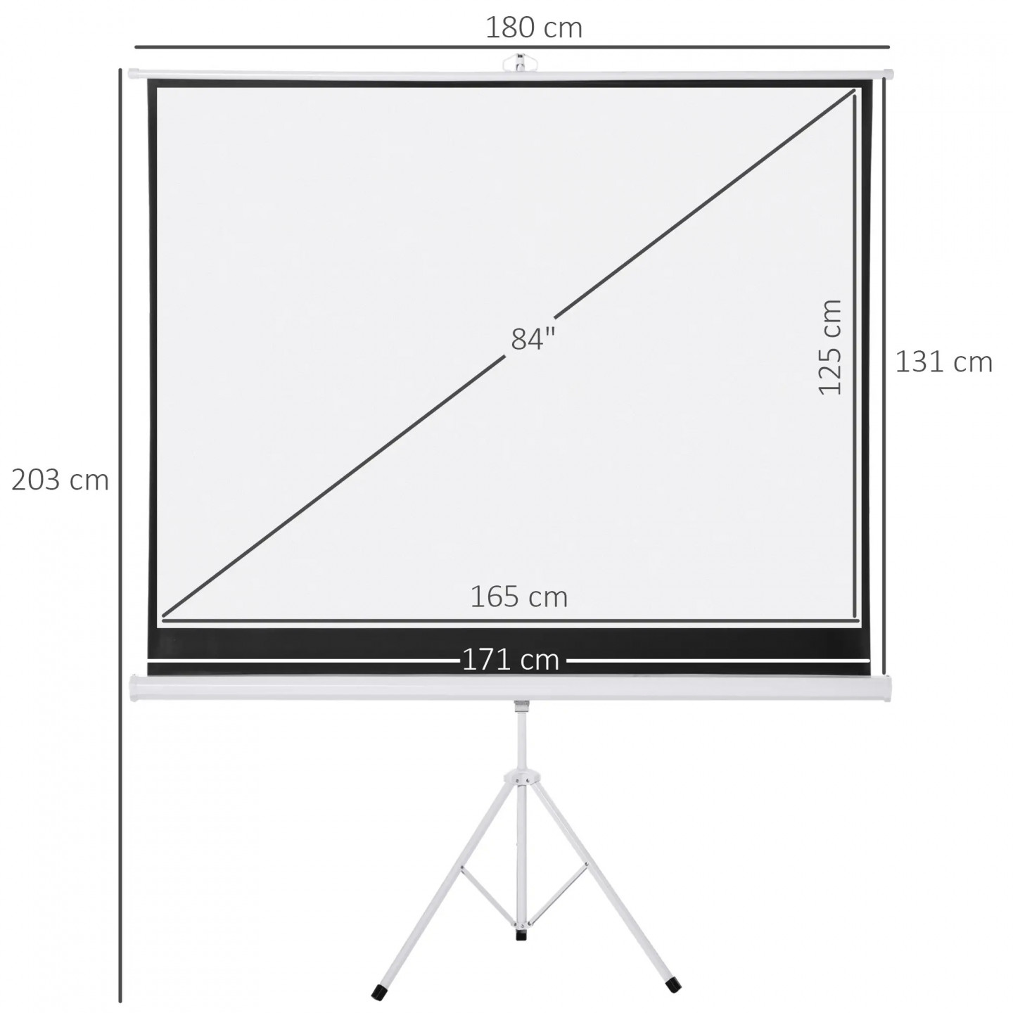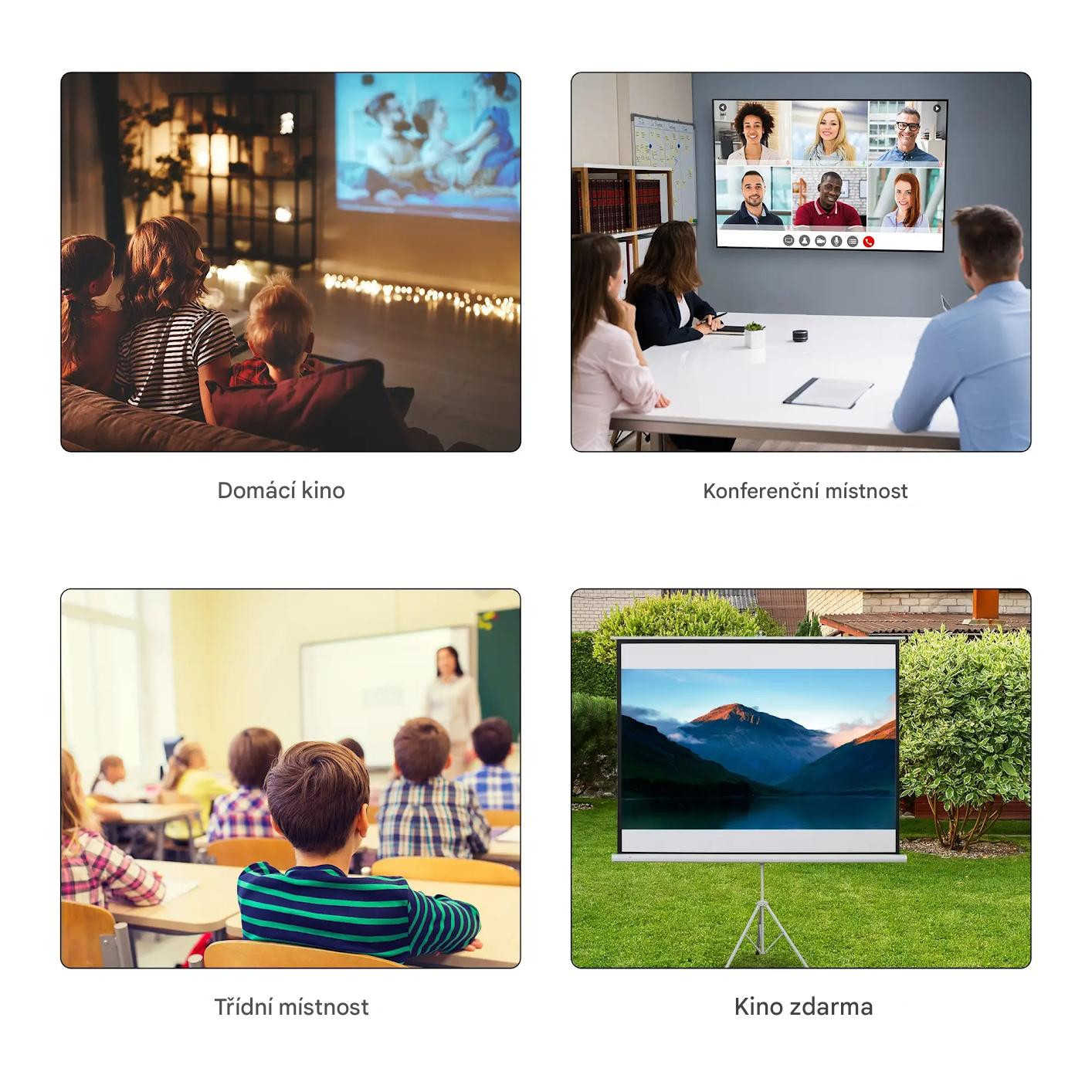 Toto projekční plátno se stativem je ideální volbou pro domácí kino, kanceláře, školy nebo konferenční místnosti. S kvalitním bílým povrchem a kompaktní velikostí 171 x 131 cm nabízí vynikající viditelnost pro všechny typy projekcí. Je snadno přenosné a skvěle se hodí pro různé účely, ať už jde o prezentace, filmové projekce, školní výuku nebo videokonference.