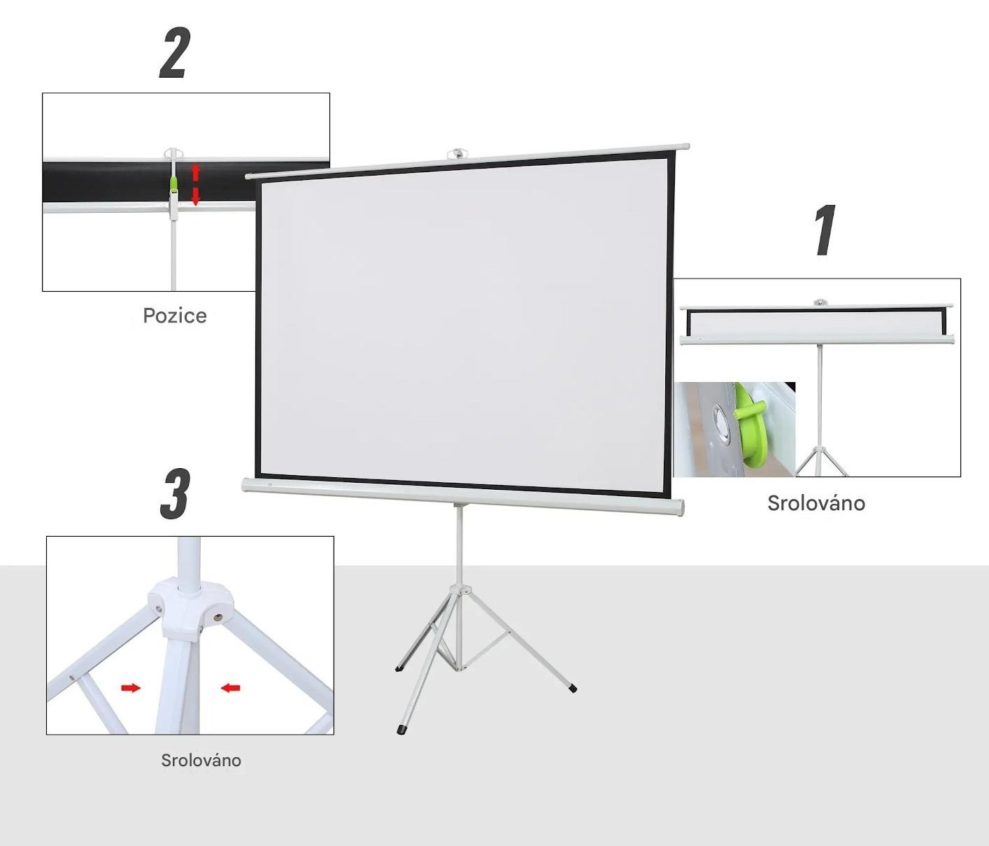 Projekční plátno se stativem, 171 x 131 cm | bílé