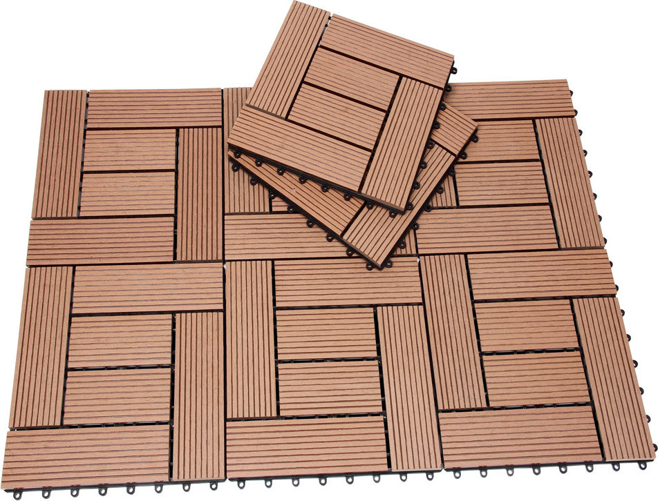 WPC dlaždicová mozaika v terakotové barvě kombinuje přírodní vzhled dřeva s odolností kompozitního materiálu. Ideální pro terasy, balkony nebo zahradní chodníky – snadná pokládka, dlouhá životnost a odolnost vůči vlhkosti a povětrnostním vlivům.