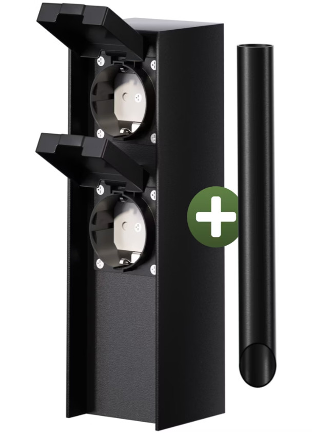 Ať už se jedná o osvětlení zahradní párty , vánoční světýlka, sekání trávníku nebo elektrický gril, vícenásobná zásuvka vám konečně umožní napájet více venkovních zařízení současně. Je elegantní, bezpečná a díky praktickému dvojitému konektoru to dělá v každém ročním období .Vícenásobná zásuvka je vyrobena z vysoce kvalitní, silné nerezové oceli s elegantním černým práškovým lakováním a je odolná proti korozi . Zahradní zásuvka se velmi snadno instaluje: lze ji buď ukotvit v zemi pomocí pevného trnu, nebo přišroubovat přímo ke dřevu pomocí základny . Vysoce kvalitní kryty zásuvek umožňují instalaci rozvodné krabice 220-240 V uvnitř sloupu s ochranou proti vodě, což umožňuje její celoroční používání za každého počasí s maximálním výkonem 3 680 W. Dětská pojistka zajišťuje maximální ochranu dětí hrajících si na zahradě.