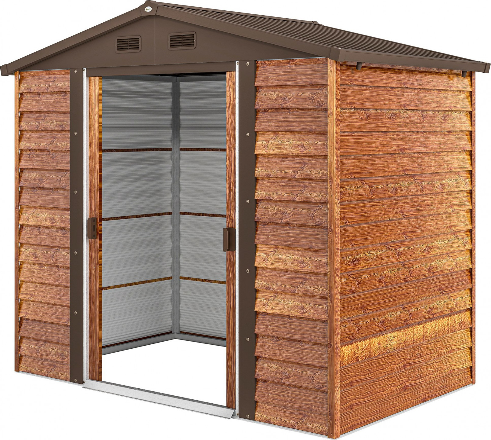 Kovová kůlna na nářadí ve vzhledu dřeva 152 x 235,7 x 208,7 cm | hnědá