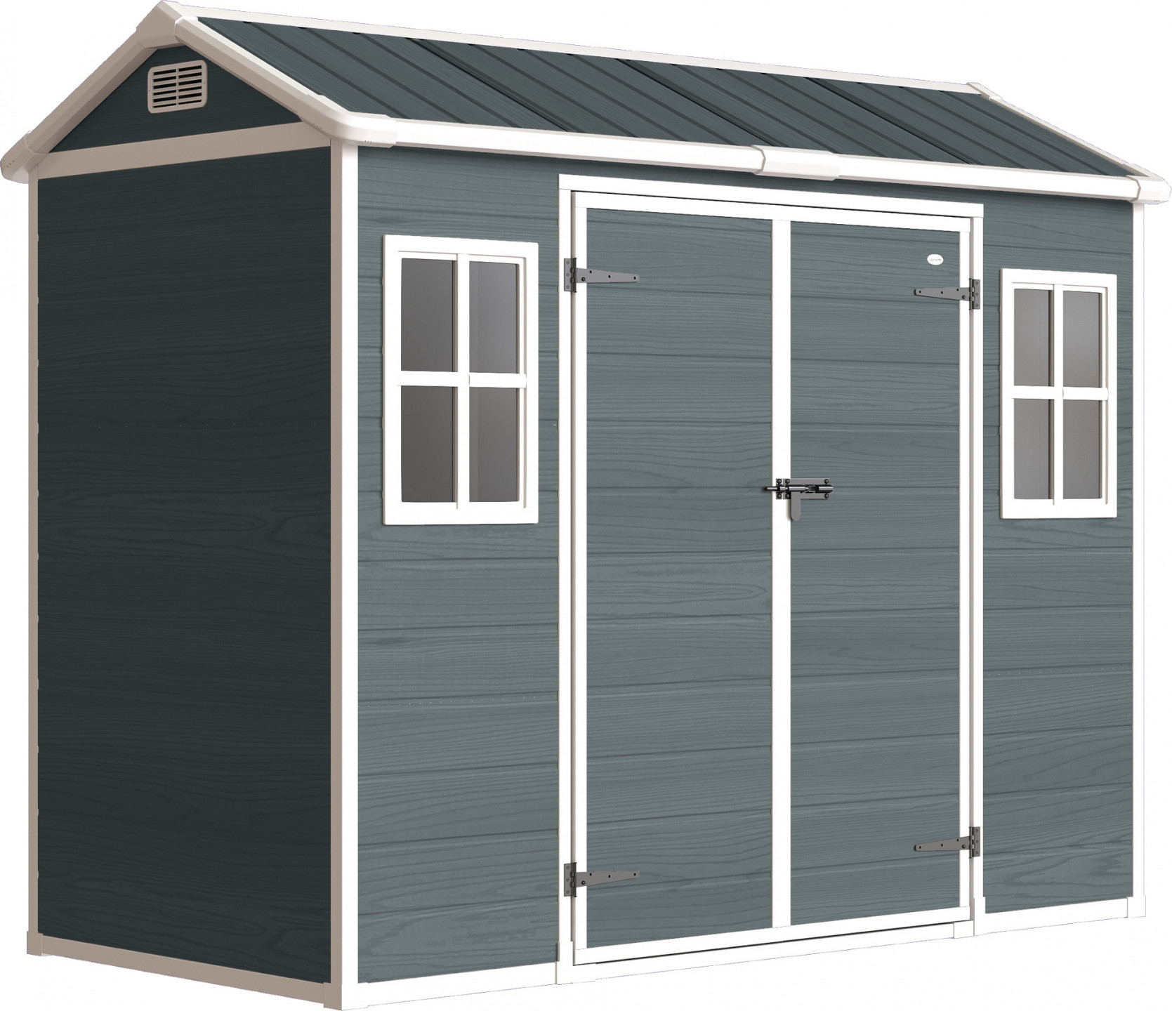 - Široké dvojité dveře o šířce 116 cm na kůlně umožňují snadný přístup k velkému vybavení