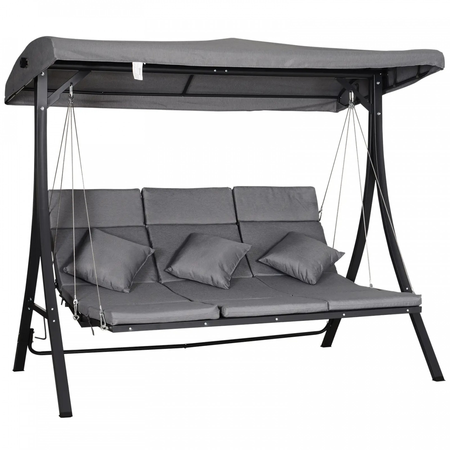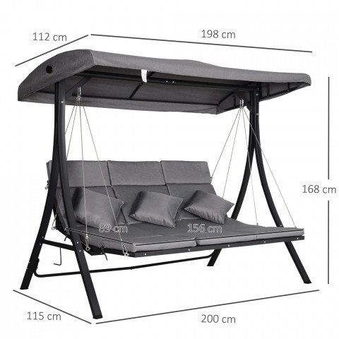 Houpačka pro 3 osoby 200 x 115 x 168 cm | šedá