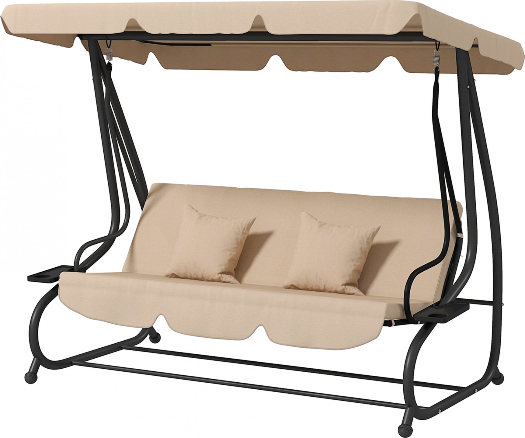 Díky odolnému kovovému rámu a pohodlným polštářům je tato třímístná hollywoodská houpačka skvělým místem k odpočinku. Nastavitelný potah zahradní houpačky nabízí ochranu před sluncem a držáky na nápoje na každé straně poskytují ještě větší pohodlí. Samotná zahradní houpačka pro dospělé je skládací, takže ji lze nastavit do vzpřímené polohy k sezení. Můžete ji také zacvaknout do opěrné tyče a proměnit ji v houpací lůžko.