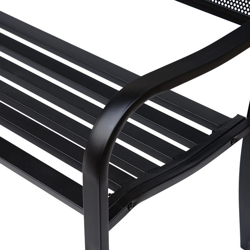 Užijte si příjemný odpočinek na zahradě na této moderní lavičce. Robustní ocelová konstrukce je v elegantní černé barvě a je opatřena práškovým nástřikem. Díky tomu je odolná vůči povětrnostním vlivům a korozi a snese zatížení až 280 kg. Na ergonomicky tvarovaném sedadle je dostatek místa pro vás i další osobu. Díky rychlé a snadné montáži budete moci brzy vyzkoušet svůj nový relaxační koutek a vnést do své zahrady pocit klidu.