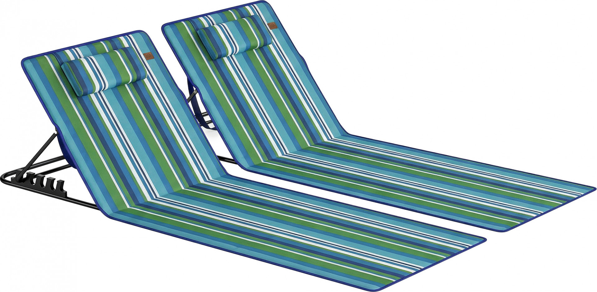 Už vás nebaví objemné a nepohodlné židle na cesty? Přenášení všeho s sebou může rychle zkazit zábavu. Se sadou 2 plážových lehátek je to minulost. Tato lehká, skládací sada plážových lehátek je ideální pro dvě osoby. Díky čtyřem nastavitelným polohám opěradla si můžete užívat optimální pohodlí a společné chvíle odpočinku.