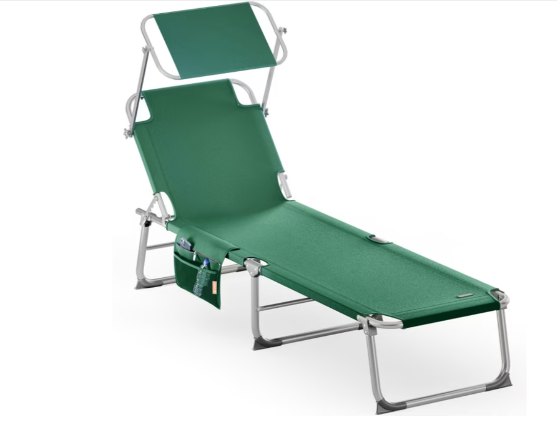 Díky kompaktnímu a elegantnímu hliníkovému designu se toto čtyřnásobně nastavitelné lehátko snadno přepravuje. Dvě praktická látková poutka zajišťují snadné přenášení.