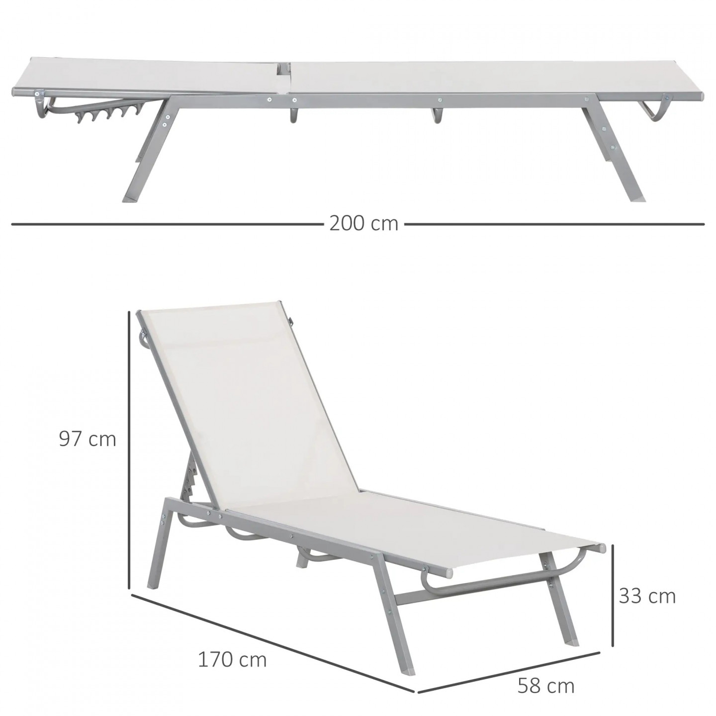 - Rozměry s rovnými zády: 200 x 58 x 62 cm.