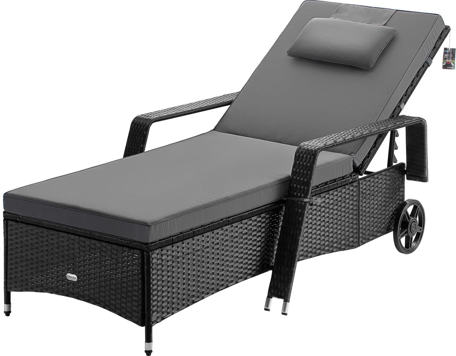 Proměňte svou zahradu v oázu wellness s pohodlným lehátkem. Slunečné a relaxační chvíle na zahradě, terase nebo balkonu jsou ještě lepší s extra silným 7cm polštářem, na kterém si můžete odpočinout.Polštáře jsou vodoodpudivé a  odolné vůči UV záření . Lehátko unese až 160 kg . Díky hladce se pohybujícím kolečkům můžete zahradní lehátko snadno přepravovat. To vám umožní pohybovat s ním podle slunce. Opěrka hlavy je nastavitelná v pěti polohách , což vám umožní snadno nastavit opěradlo do ideální polohy vleže nebo v sedu, například při čtení. Opěrka hlavy zajišťuje pohodlnou polohu krku. Ručně tkaný polyratan a robustní ocelový rám s práškovým nástřikem jsou navrženy pro bezpečnost a zároveň dodají vaší zahradě stylový nádech.