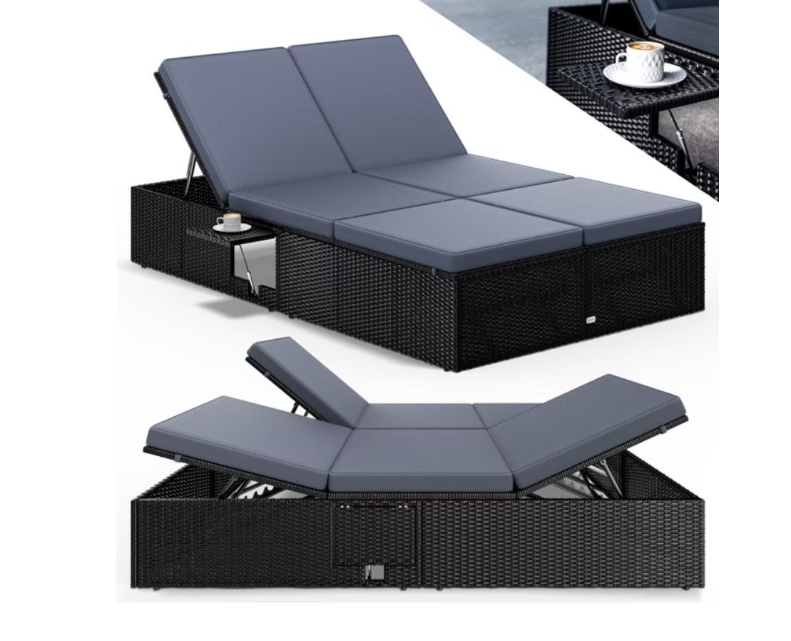 Zahradní lehátko z polyratanu 200x115x33cm | černá + antracitová