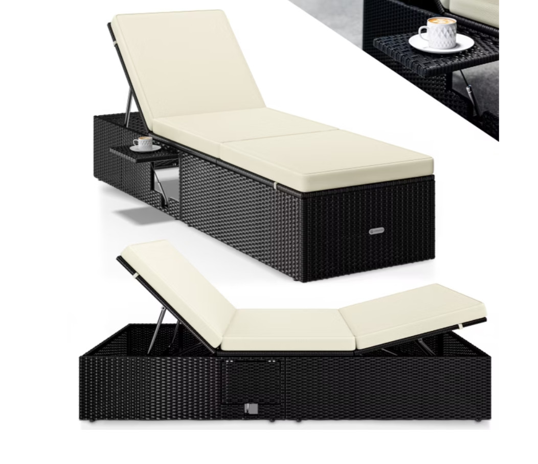 Zahradní lehátko z polyratanu 200x58x33cm | černé/krémové