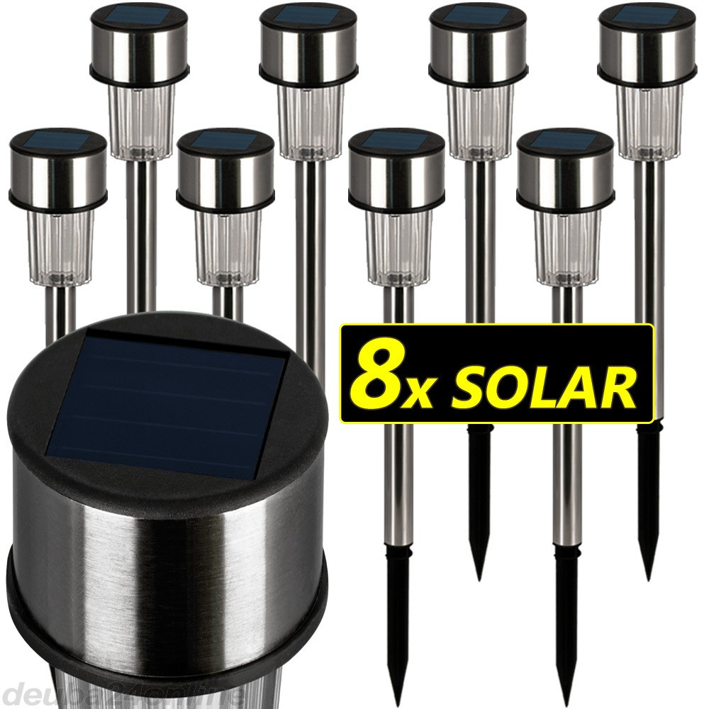 Solárne nerezové LED lampy stĺpikové | sada 8 kusov