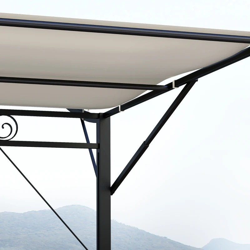 Vytvořte si elegantní místo k odpočinku a společenskému posezení s tímto skvělým volně stojícím krytem terasy. Altán se skládací střechou nabízí bezpečnou ochranu před sluncem a lehkým deštěm. Boční střešní nástavec lze v případě potřeby také sklopit a odklopit, aby poskytl více stínu nebo lepší ochranu před větrem. Robustní ocelový rám lze v případě potřeby připevnit také na zeď - ideální na terasu a zahradu.