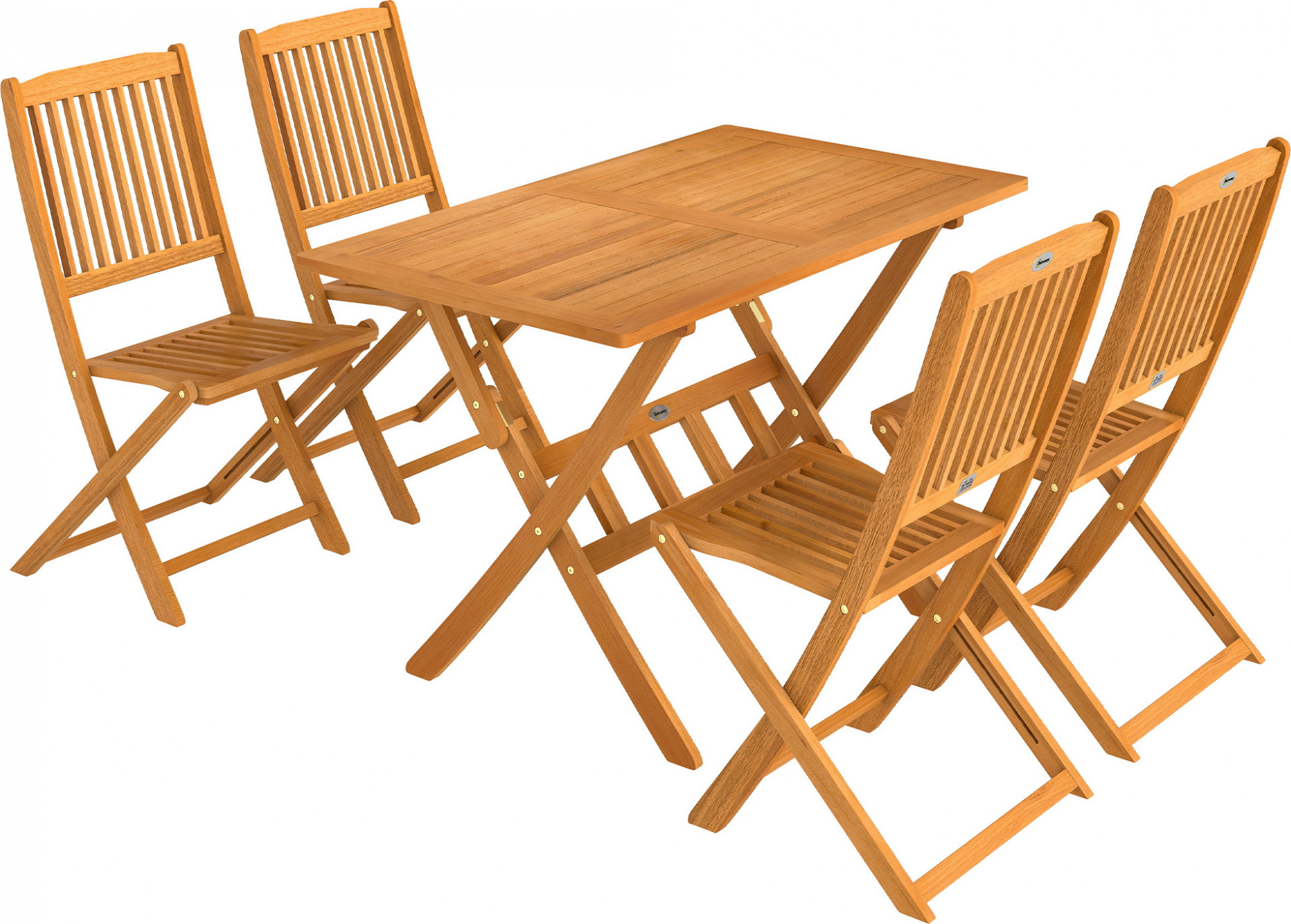 - 5dílná sada zahradního nábytku se stolem a čtyřmi židlemi v přírodních odstínech dřeva