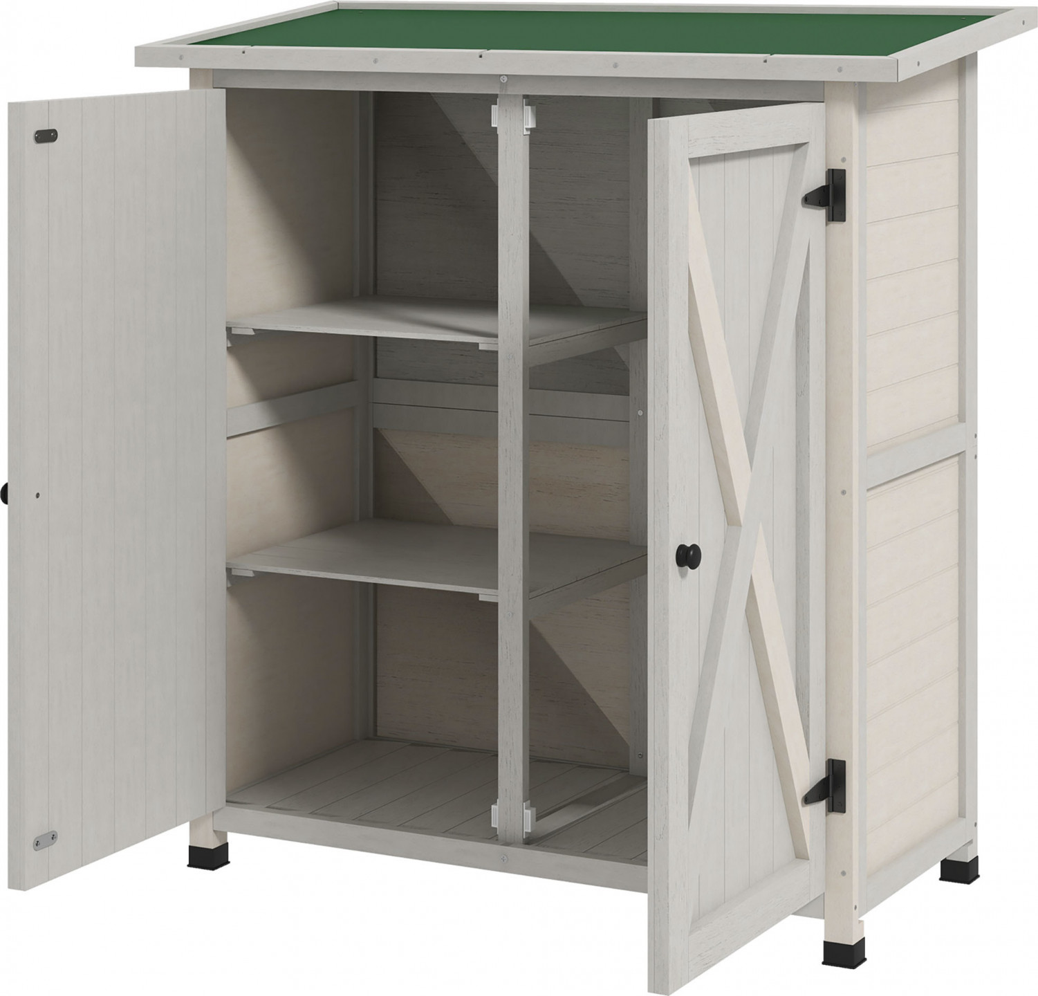 K udržování zahrady v kondici potřebujete spoustu nářadí a vybavení a může být obtížné je bezpečně uskladnit. Na pomoc přichází zahradní přístřešek odolný proti povětrnostním vlivům. Dvoje dveře zahradního přístřešku umožňují snadný přístup a opěrky pro nohy zajišťují dostatečnou stabilitu, zatímco asfaltový kryt na střeše zabraňuje pronikání vody dovnitř. Díky robustní konstrukci odolné proti povětrnostním vlivům je tento zahradní přístřešek ideální pro venkovní použití.