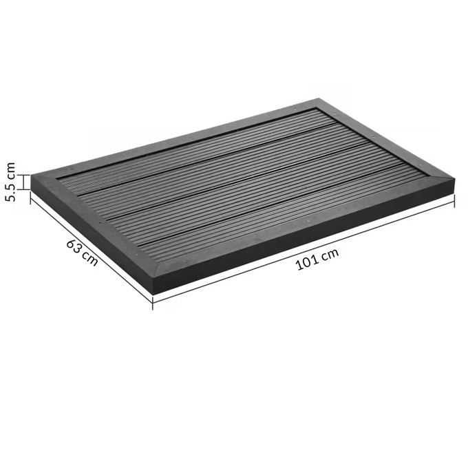 Solární sprchu můžete připevnit na robustní, protiskluzovou a odolnou základní desku z WPC nebo ji použít ke stabilizaci či zvednutí bazénového žebříku. Vytvořte si vlastní krásný design ve vaší venkovní vířivce profesionálním způsobem s tímto povětrnostně odolným podlahovým prvkem. 8 protiskluzových podložek na spodní straně a protiskluzový povrch zajišťují stabilitu a bezpečnost. Základová deska unese maximální zatížení až 300 kg, což z ní činí robustní základ. Základová deska z WPC není náchylná k třískání ani hnilobě a drážkovaný profil snižuje množství nečistot, které se dostanou na vaše nohy nebo do bazénu. Ideální pro sprchování ve vaší soukromé wellness oáze! WPC - Dřevěné polymerní kompozity.