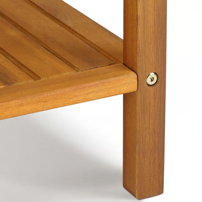 Odkládací stolek vyrobený z kvalitního, olejovaného akáciového dřeva s certifikací FSC® se dvěma velkými policemi je skutečně všestranný. Lze jej použít různými způsoby – jako praktický odkládací stolek, elegantní konferenční stolek nebo rustikální stojan na květiny.
