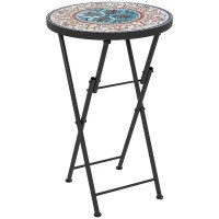 Oživte svou zahradu malým zahradním stolkem s barevnou mozaikovou deskou. Praktická skládací konstrukce balkonového stolu umožňuje úsporu místa při skladování a snadnou přeměnu na kulatý zahradní stůl nebo atraktivní stojan na květiny. Kovový rám s práškovým nástřikem a podnožka zajišťují stabilitu a pohodlí. Skvěle se hodí na každou terasu nebo do zahradního koutu a dodá mu barevný nádech a všestrannost.