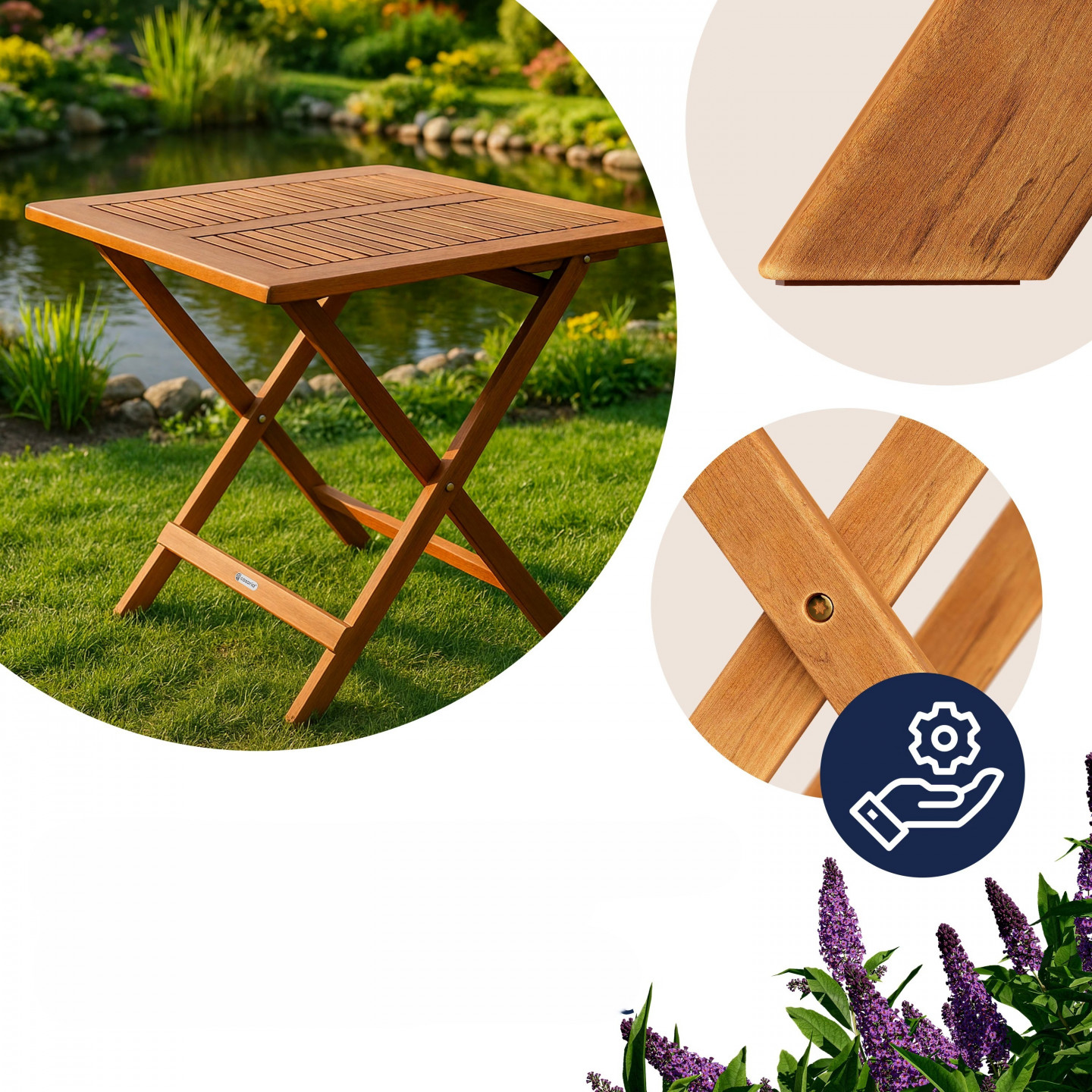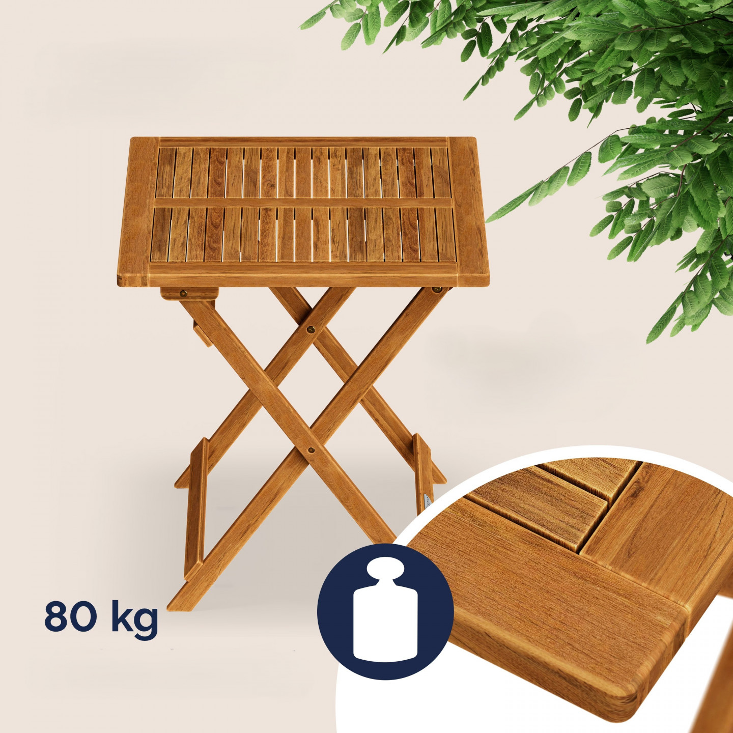 Čtvercový skládací stůl je vyroben z masivního, olejovaného akáciového dřeva. Stůl se vyznačuje nejen vynikajícím řemeslným zpracováním, ale také vysokou kvalitou . Akáciové dřevo je extrémně tvrdé, robustní a obzvláště odolné.