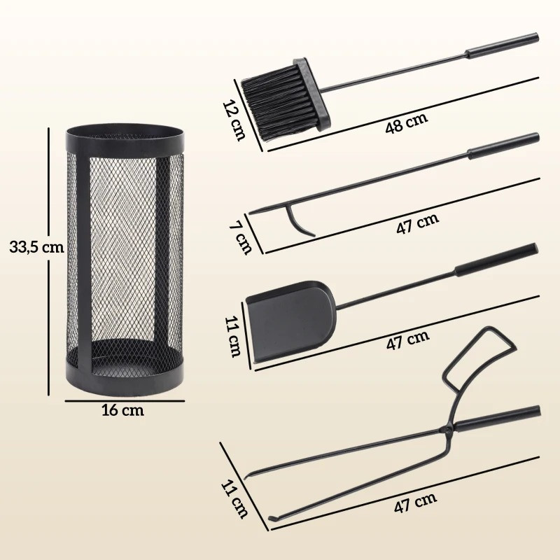 Tato pětidílná sada se skládá z koštěte, lopaty, kleští, pohrabáče a praktického kovového koše a je dokonalým doplňkem každého vnitřního i venkovního prostoru. Sada příborů do trouby je vyrobena z robustního kovu se stylovým černým práškovým nástřikem a nabízí nejen nadčasovou estetiku, ale také praktickou odolnost.
