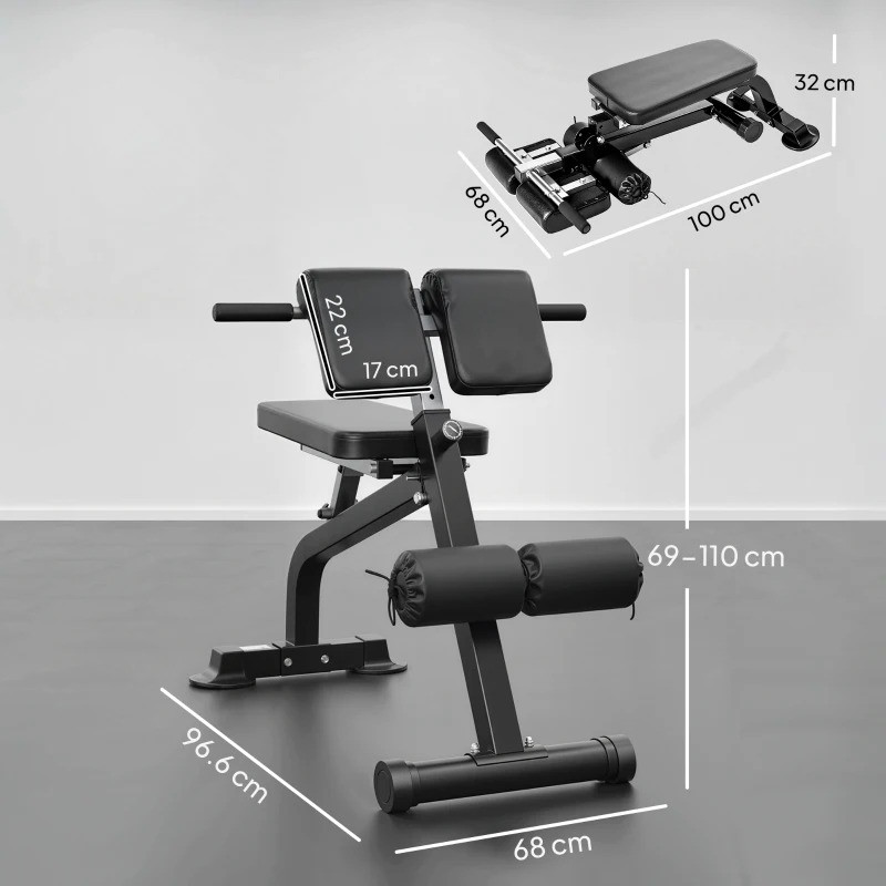 Je obtížné najít správné vybavení pro cvičení celého těla? Římská židle přináší revoluci ve vašem tréninku, protože se bez námahy promění ve skládací posilovací lavici pro všestranný silový trénink. Robustní ocelový rám posilovací lavice unese až 150 kg a poskytuje stabilitu, kterou potřebujete k efektivnímu tréninku jádra, zad a hýždí. Vytvořte si doma efektivní fitness program s flexibilní a bezpečnou základnou.