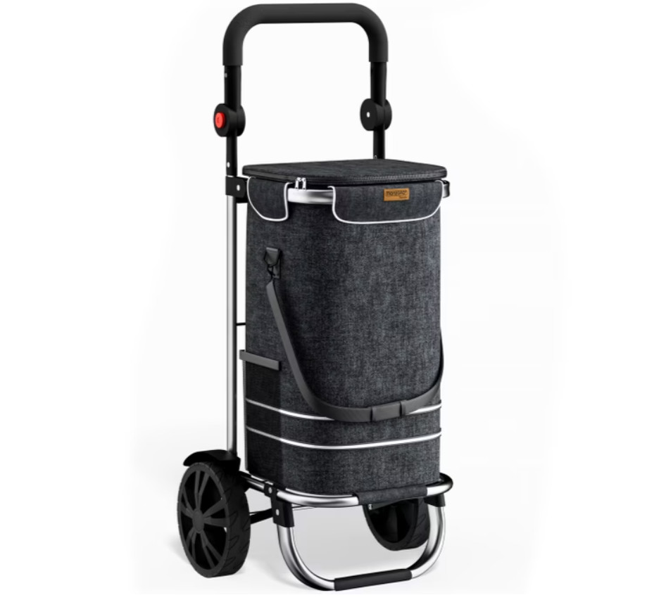 Nákupní vozík má objem 56 litrů a unese až 50 kg. Používejte jej jako nákupní vozík, praktickou tašku přes rameno nebo rám jako malý ruční vozík. Tašku můžete také zavěsit na nákupní vozík pomocí háčků.