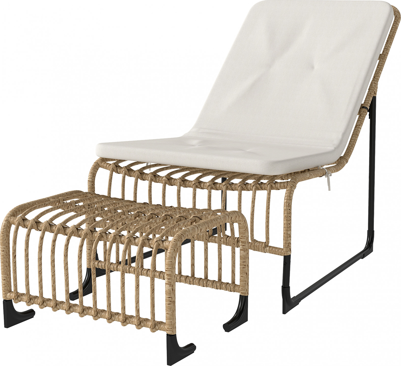 - Křeslo bez područek a ratanová podnožka pro venkovní relaxaci